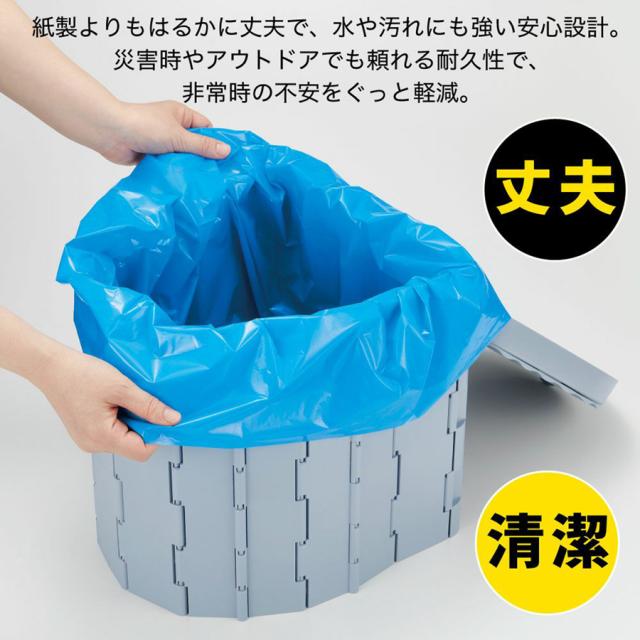 非常時やアウトドア、防災対策、介護の場面など、さまざまな状況で役立つ「丸洗いできる非常用トイレ」です。