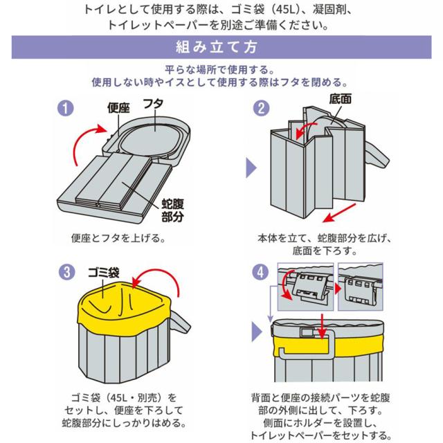 使用する際は、45Lのゴミ袋・凝固剤・トイレットペーパーをご準備ください。