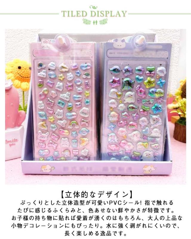 | 【立体的なデザイン】ぷっくりとした立体造型が可愛いPVCシール! 指で触れるたびに感じるふくらみと、色あせない鮮やかさが特徴です。お子様の持ち物に貼れば愛着が湧くのはもちろん、大人の上品な小物デコレーションにもぴったり。水に強く剥がれにくいので、長く楽しめる逸品です。 【創造性の刺激】あなたの創造力を無限に広げるDIYアイテム!スマホケースやノートパソコンのカスタマイズはもちろん、日記帳・水筒・文具など、あらゆるアイテムを自分だけのアート作品に変えられます。お子様の自由な発想を育む工作材料としても、大人の上質な趣味としても、無限の可能性を秘めたクリエイティブツールです。 【ご褒美シール】お子様の頑張りを可愛く褒める、ご褒美シールに最適!子どもたちが良い行いをしたときに、ご褒美としてステッカーを与えると、子どもたちの自信が高まり、良い行いをするための動機付けになります。 | |