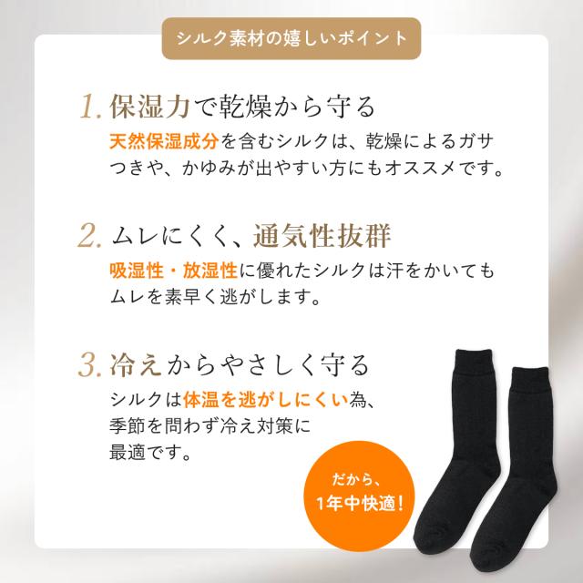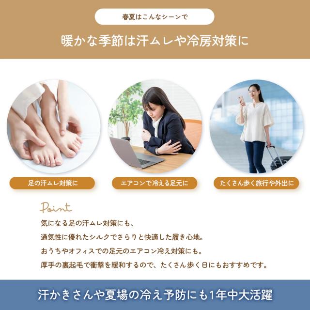 ・内側シルク素材なので、冷え対策にも足の汗ムレ対策にも1年中快適
