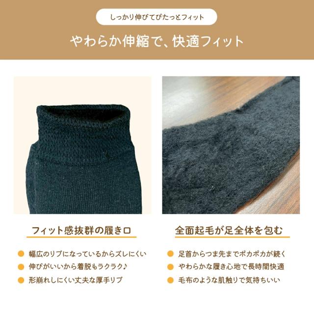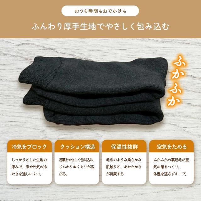 裏起毛の厚手ソックスが、やさしく体温を守ります。