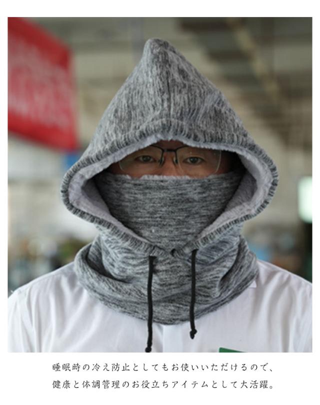 | ポカポカと頭を包み込みます。裏起毛 フードウォーマー 男女兼用 フードウォーマーは、これまでの防寒具であるネックウォーマーやフードのいいとこ取りした防寒具! イヤーマフ(耳あて)として使用してもOK! 睡眠時の冷え防止としてもお使いいただけるので、健康と体調管理のお役立ちアイテムとして大活躍。 釣り、登山、スノーボード、サイクリング、ツーリング、ガーデニング…などに! 男女問わずほぼ全ての方にお使いいただけるので身体を気遣うプレゼントとして最適なアイテムです。 | |