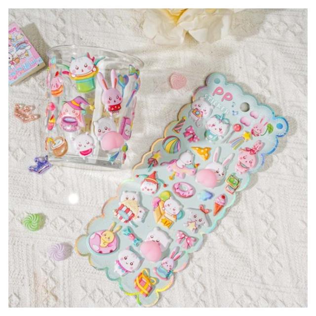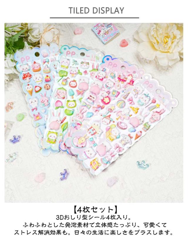 装飾用 【4枚セット】ぷくぷくシール 【4枚セット】ぷくぷくシール 日記帳用 ぷっくり シール 可愛い おしり シール デコシール DIY 3D スクラップブッキング 手帳 女の子 ステッカー アルバム スマホケース飾り ぷにぷに 子供 ごほうびシール 誕生日 プレゼント