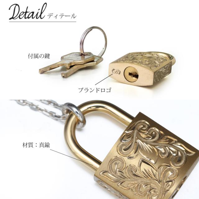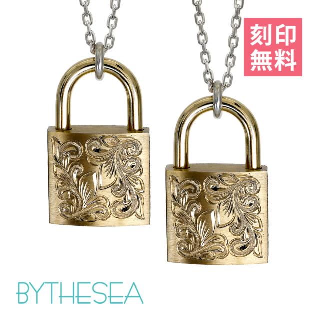 ハワイアンジュエリー ペアネックレス 刻印 無料 南京錠 鍵 パドロック ス 真鍮 キー ロック シンプル シルバー925 BY THE SEA バイザシー メンズ レディース 誕生日 プレゼント お正月 成人祝い 【品番:CG-LOCK-P】