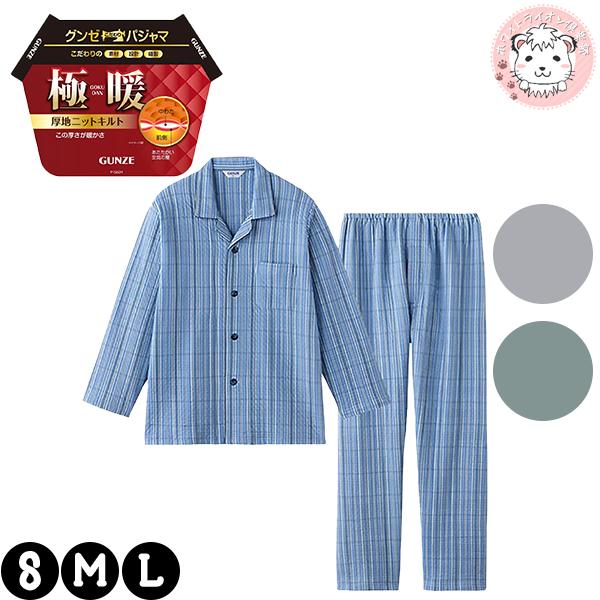 グンゼ 長袖 長パンツ パジャマ 極暖 肌側綿100% 前開き 前あき S/M/L | 腰ゴム取替可 ポケット付 秋冬 秋 冬 メンズ 綿 下着 肌着 インナー SG4245 GUNZE