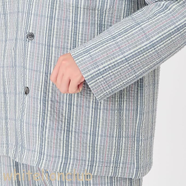 スタイルは、テーラータイプで胸ポケットがついており、パンツはうれしい前あきタイプです。