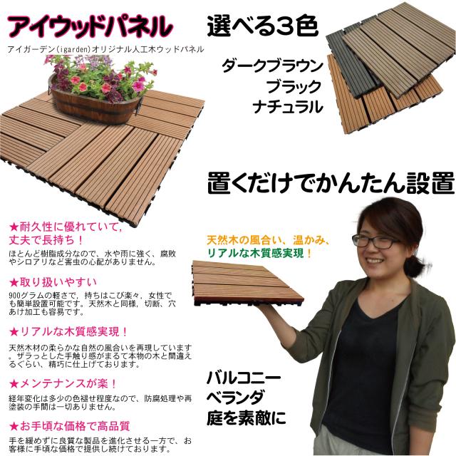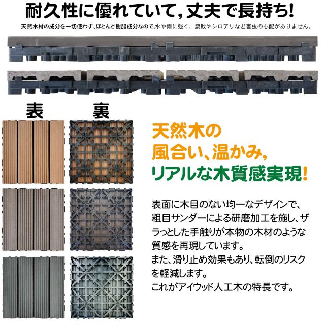ウッドパネル ウッドタイル 30x30cm 56枚 ブラック 正方形 厚み2.5cm アイウッド人工木 樹脂製 ジョイント式 腐らない 置くだけ簡単設置 ベランダタイル スノコ 屋外 屋内兼用 庭 ウッドデッキ タイルパネル