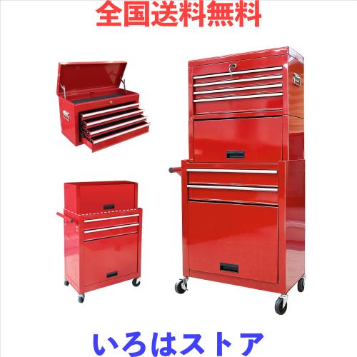 BIG RED ツールキャビネット ツールチェスト 大型 ローラー ツールワゴン 鍵付き 引き出し 工具箱 キャビネット ボックス 6段タイプ 大容量 収納多数 工具箱 大型 ガレージ(レッド/キャスター付き)