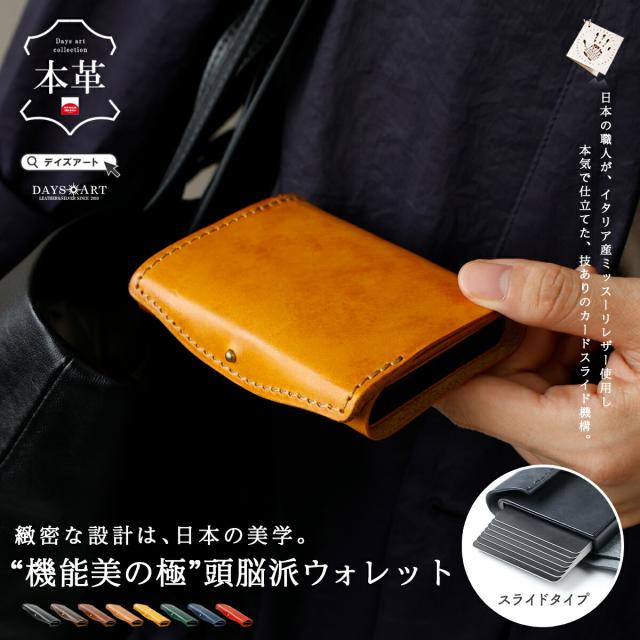 財布 本革 イタリアンレザー コンパクト ミニ財布 メンズ レディース スライド式 カードケース 小さい財布