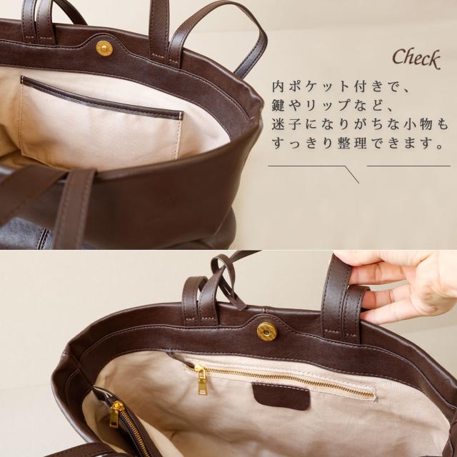 トートバッグ レザー レディース コンパートメントバッグ チャーム付き ポケット 整理整頓 収納 大人 軽量