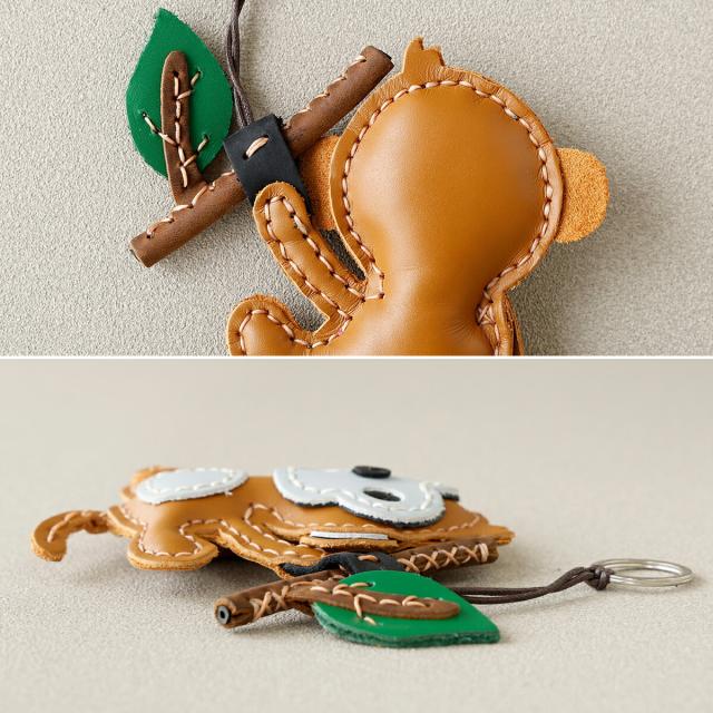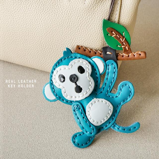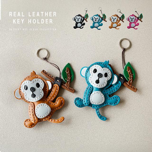 キーホルダー アニマル モンキー 猿 レザー 本革 象 レディース メンズ キーリング かわいい ステッチ