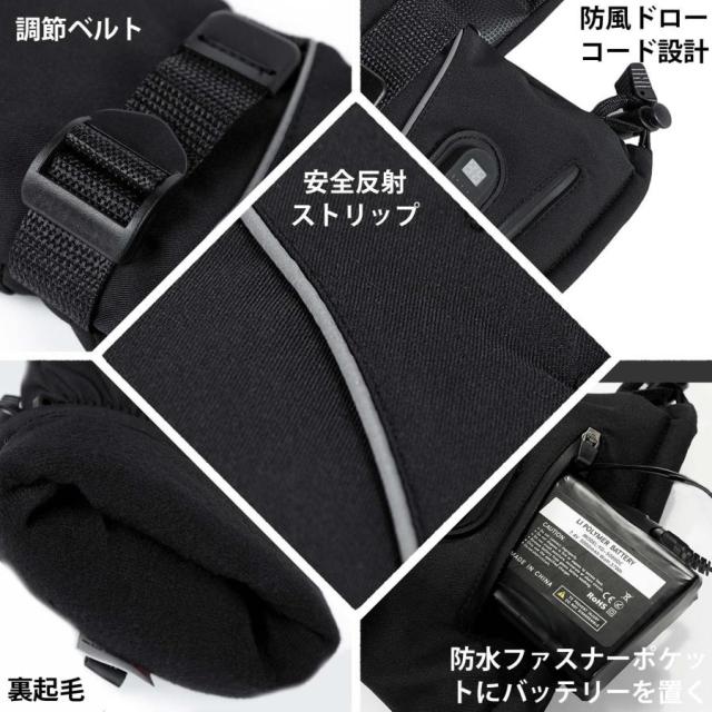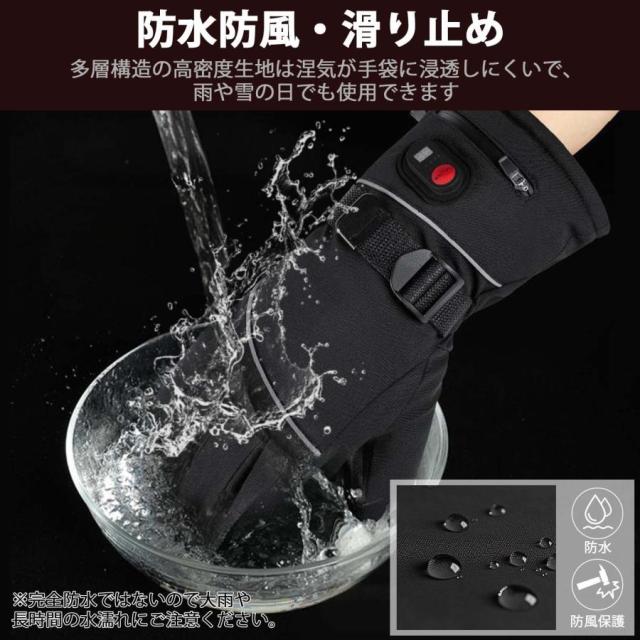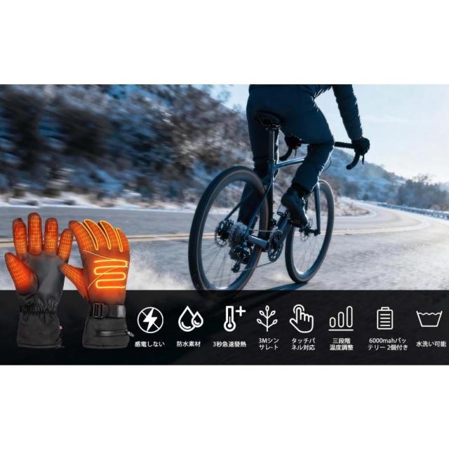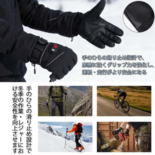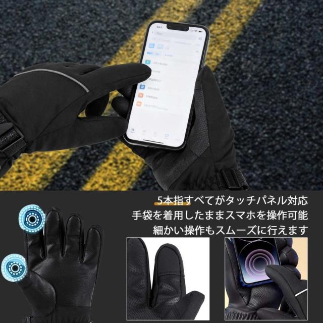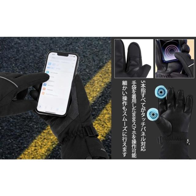 電熱グローブ ヒーター手袋 防寒グローブ バイク用 3Mシンサレート バッテリー付き 温度表示機能付き バッテリー残量可視 タッチパネル対応 65℃最高温度 防風防水 滑り止め付き 裏起毛 翌日発送