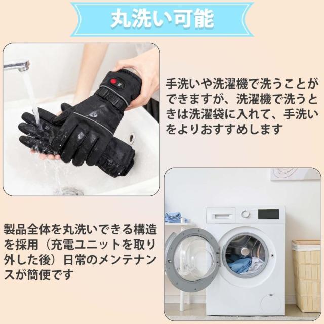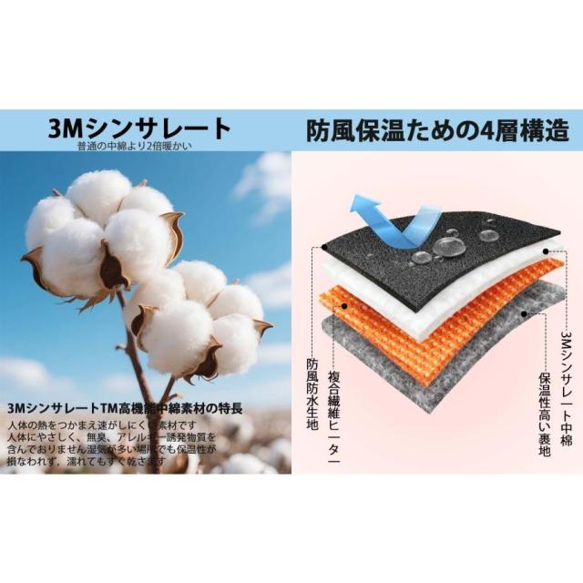 【防風防水・滑り止め付き・3M シンサレート素材】 内部に高機能保温素材 3M シンサレートを採用し、従来のポリエステル綿に比べ 1.5〜2 倍の保温力を発揮し、発熱した温かさを外部に逃がさない。発熱体には柔軟性に優れた複合繊維発熱糸を使用し、断線リスクを低減すると同時に、手の甲から指先まで均一に温める。耐久性は従来品の 2〜3 倍向上し、軽量で動きやすい特性で長時間のバイクライディングにも最適です。さらに、水洗い・洗濯機洗いが可能な設計となっており、手袋を衛生的に保つことが極めて簡単です。(※完全防水仕様ではなく、大雨や長時間の水濡れには注意してください)