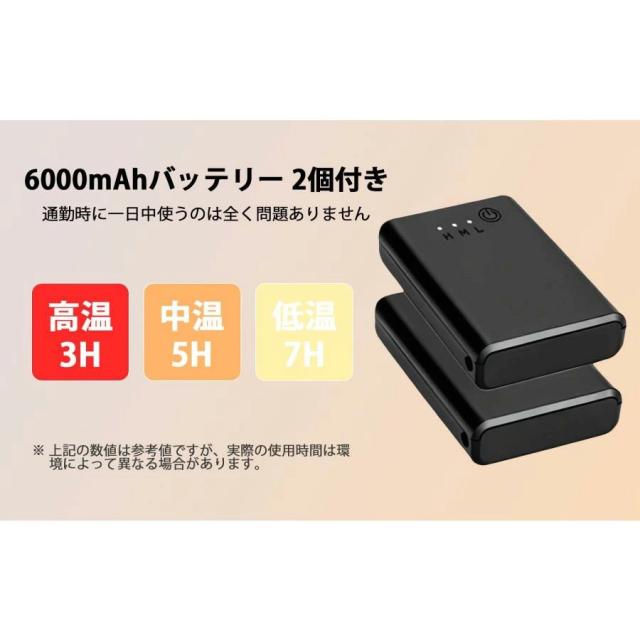 【12000mAh の大容量バッテリー】 6000mAh の大容量バッテリー2個付きを採用しており、長時間にわたって暖かさを保つことができます。Type - C 口と DC 口を備えており、充電が簡単に行えます。例えば、スキーやスノーボードなどのアウトドアスポーツでの一日の楽しみや、長距離の自転車ライド、あるいは冬の夜のロングウォークなど、長時間にわたるアクティビティ中も手が冷えることはありません。どんな環境でも簡単に充電することができます。気温が低くない日は低温モードを選択することで、省エネと健康を両立できます。