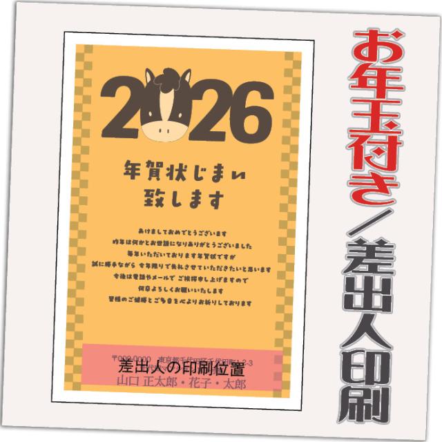 年賀状じまい お年玉付き 年賀はがき 4枚 文章印刷済み 終活年賀状 年賀状辞退 2026年 差出人印刷込み(デザイン:J20) うま 馬 午年