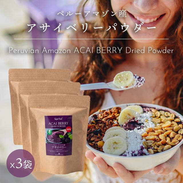 アサイベリードライパウダー100% 200g 3袋 ペルーアマゾン産 原材料は100%アサイのみ 甘味のための砂糖や酸味のクエン酸を加えていません