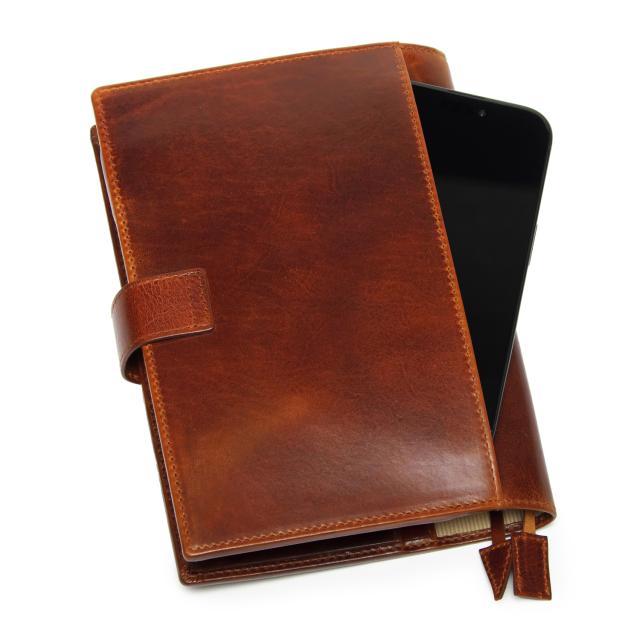 ●風合い豊かなベジタブルタンニングレザーで仕立てたB6サイズの手帳とノートカバー。