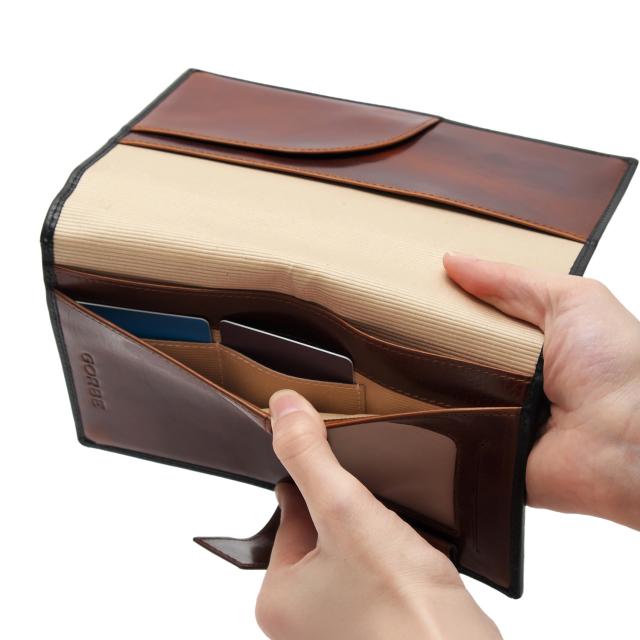 ●仕様:ノート(手帳)ホルダー×左右に各1、クリアカードポケット×1、シークレットカードポケット×2、ペンホルダー×1、オープンポケット×3、ホルダー×1、化粧箱入り