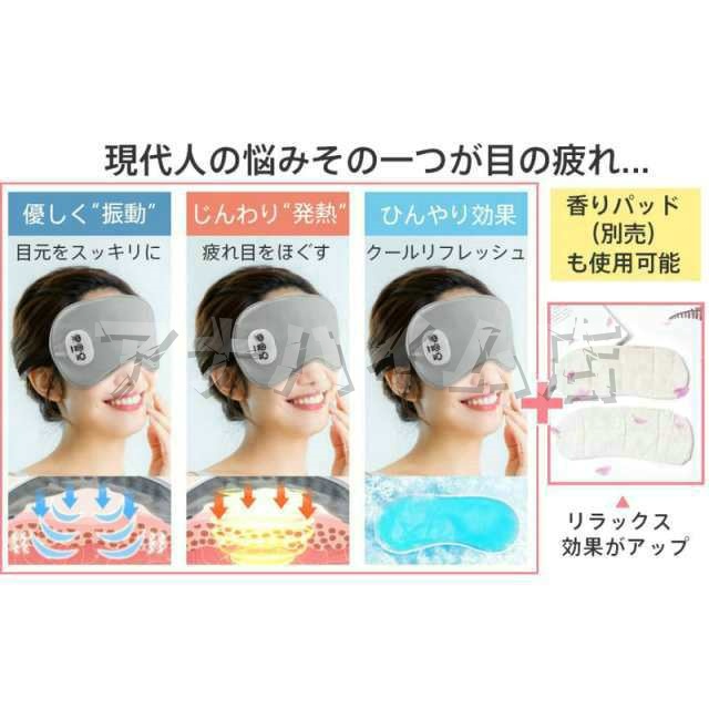 ホットアイマスク 充電式 USB 温熱 温める 冷感 温感 冷却 アイマッサージ アイマスク 目元マッサージャー 目元マッサージ器 振動 旅行 コンパクト 快適 プレゼント タイマー 女性 男性 ギフト 遮光 手軽 圧迫感なし 出張 旅行 昼休み 就寝前 爆買