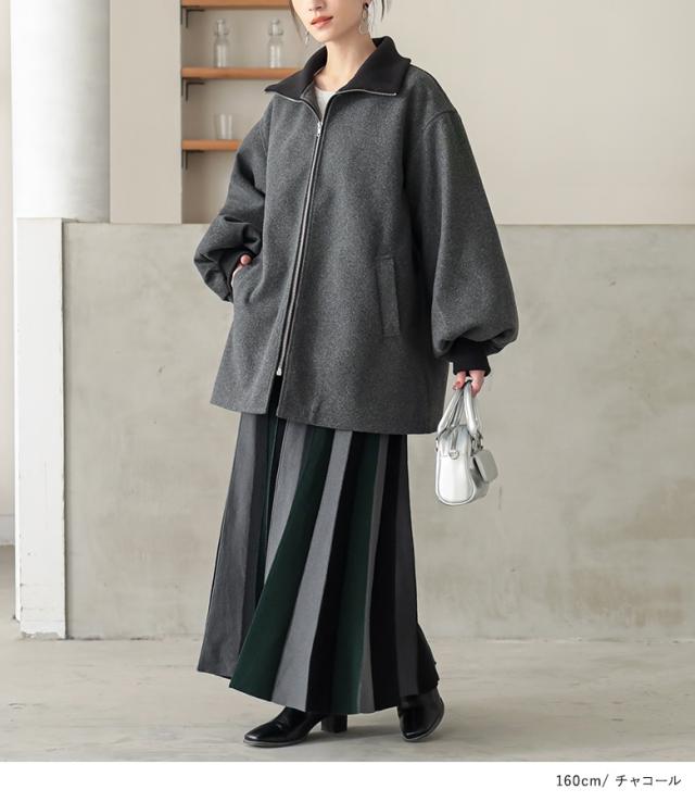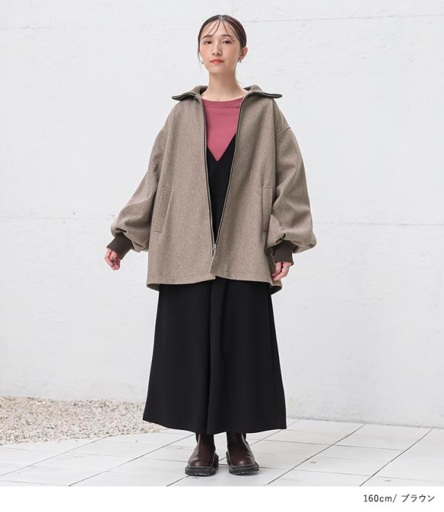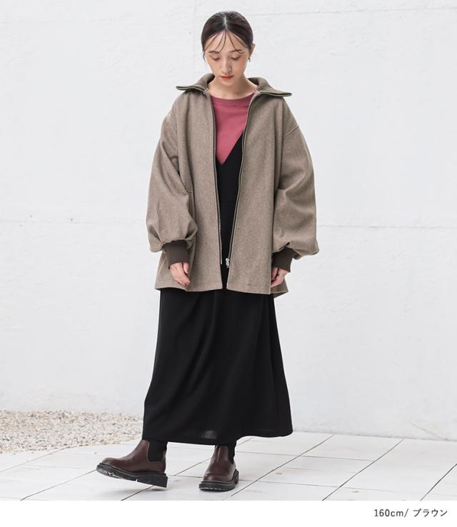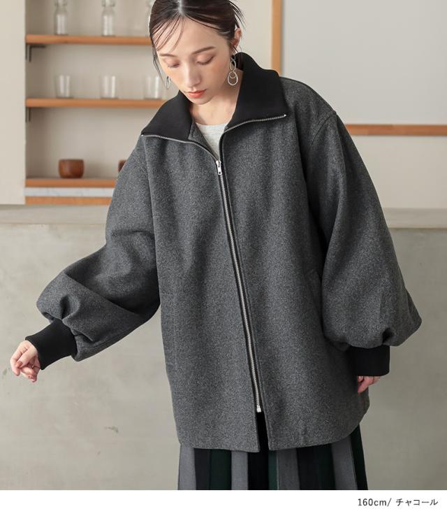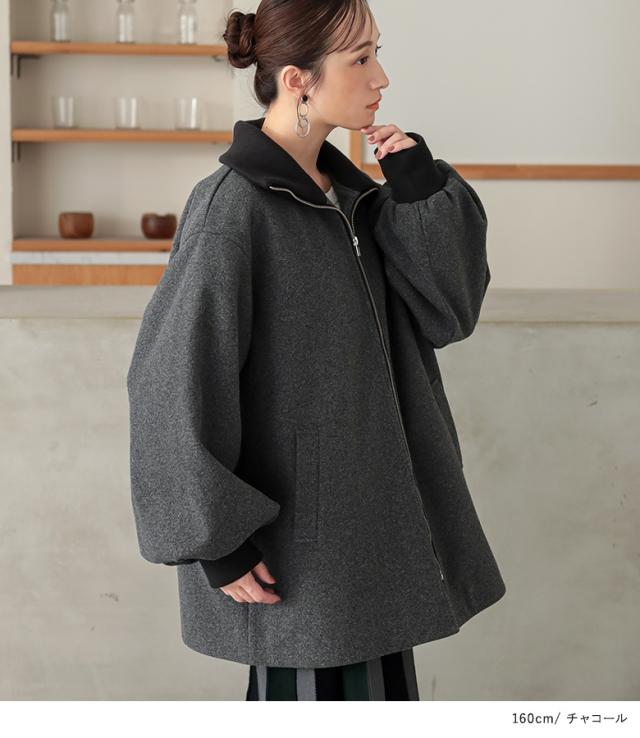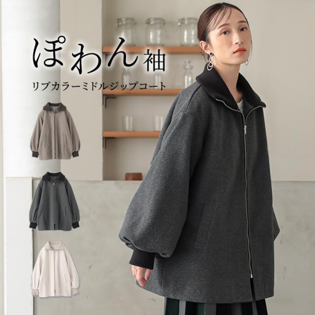 コート レディース アウター ブルゾン ジャケット 羽織り ボリューム袖 リブカラー スタンドネック 秋 冬 オシャレウォーカー 【TP】 ライトアウター 襟付き 白 アイボリー 長袖 パフスリーブ ぽわん袖 バルーンスリーブ バルーン袖 ミディ丈 ミドル丈 ビッグシルエット オーバーサイズ 配色 無地 異素材MIX ポケット 寒さ対策 防寒 あったか カジュアル シンプル ナチュラル モード キレカジ 可愛い系 大人女子 大人可愛い お洒落可愛い 大人カジュアル 上品 きれいめ ベーシック ニュアンス ラフ 動きやすい お尻が隠れる 二の腕カバー Sサイズ Mサイズ 10代 20代 30代 40代 50代 60代 低身長 高身長 女子会 オフィス 通勤 通学 お買い物 お出掛け 旅行 おしゃれ お洒落 トレンド 流行 osharewalker ブラウン 茶色 灰色 チャコール[ID]13oo02b[リブカラーミドルジップコート]