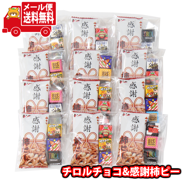 (メール便で全国送料無料)お菓子 詰め合わせ チョコっと感謝セット(12個) チロルチョコ 感謝柿ピー (omtmb9742z)【送料無料 チロルチョコ 感謝柿ピー 小袋 個包装 お試し退職 転職 販促品 粗品 ノベルティ イベント 駄菓子 子供会 プレゼント ギフト パーティー】