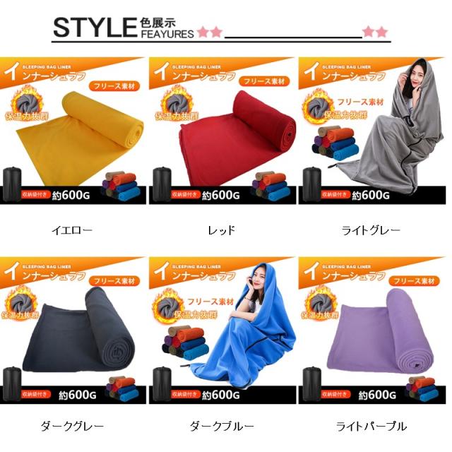 寝袋 シュラフ 冬用 封筒型 180x80cm インナーシュラフ フリース ブランケット ひざかけ キャンプ 掛け毛布 暖かい 洗える 軽量 車中泊
