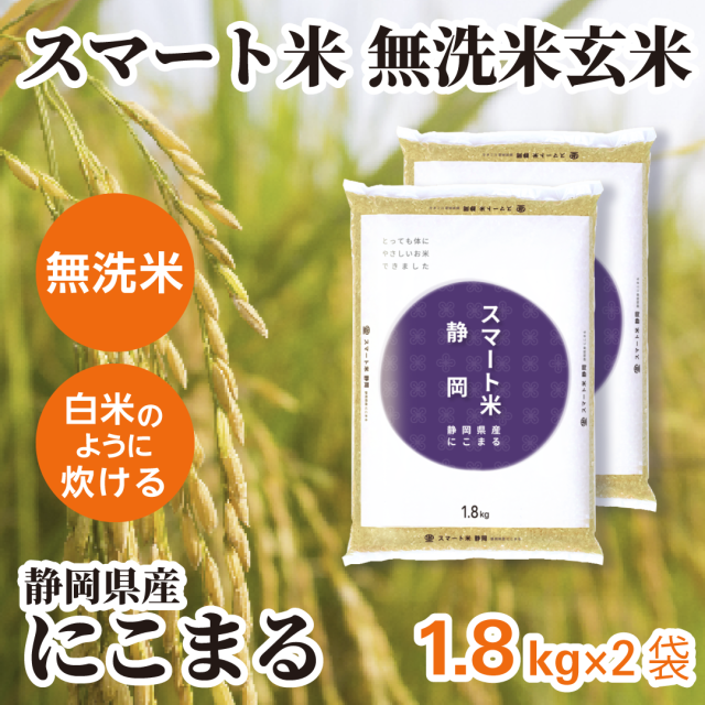 無洗米玄米 スマート米 静岡県産 にこまる 1.8kg×2袋 残留農薬不検出 令和7年産