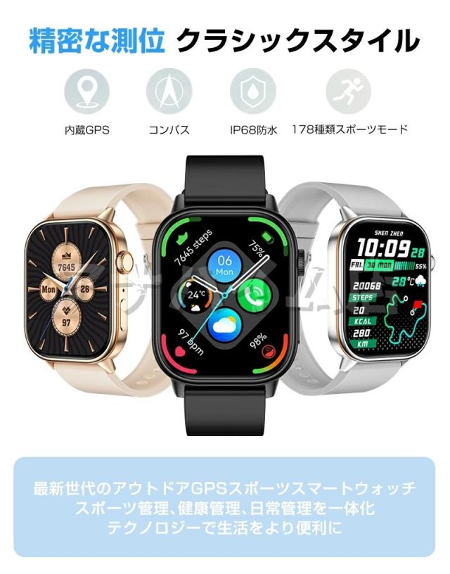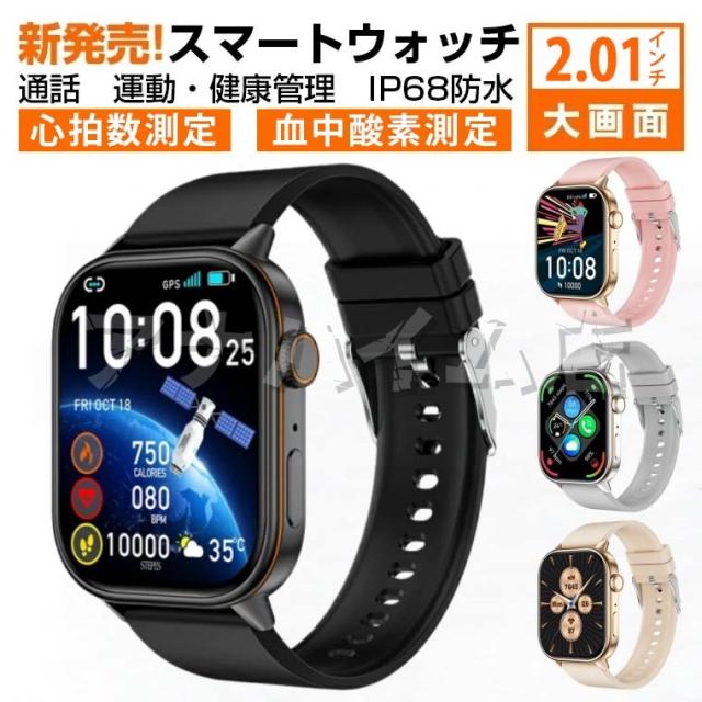 スマートウォッチ GPS機能 健康管理 着信通知 睡眠検測 運動モード 2.01インチ大画面 心拍計 歩数計 LINE通知 日本語 IP68防水 アラーム 音楽再生 スポーツ腕時計 男女兼用 多機能 おしゃれ 腕時計 誕生日 プレゼント 彼女 彼氏