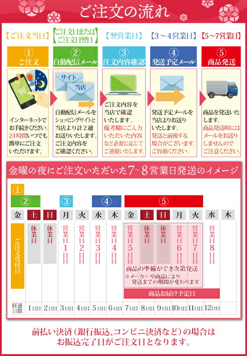 こちらの商品は土日祝・長期休業日を除いた営業日内にて発送いたします。予めご了承くださいませ。