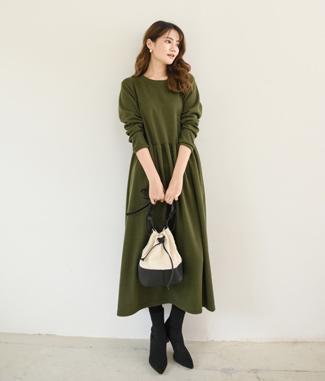 【500円OFFクーポン対象商品】 ワンピース レディース ウエスト切替 スウェット素材 ロングワンピース タック入 01OP0082