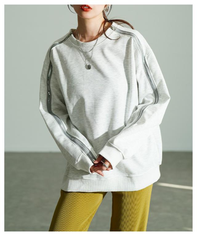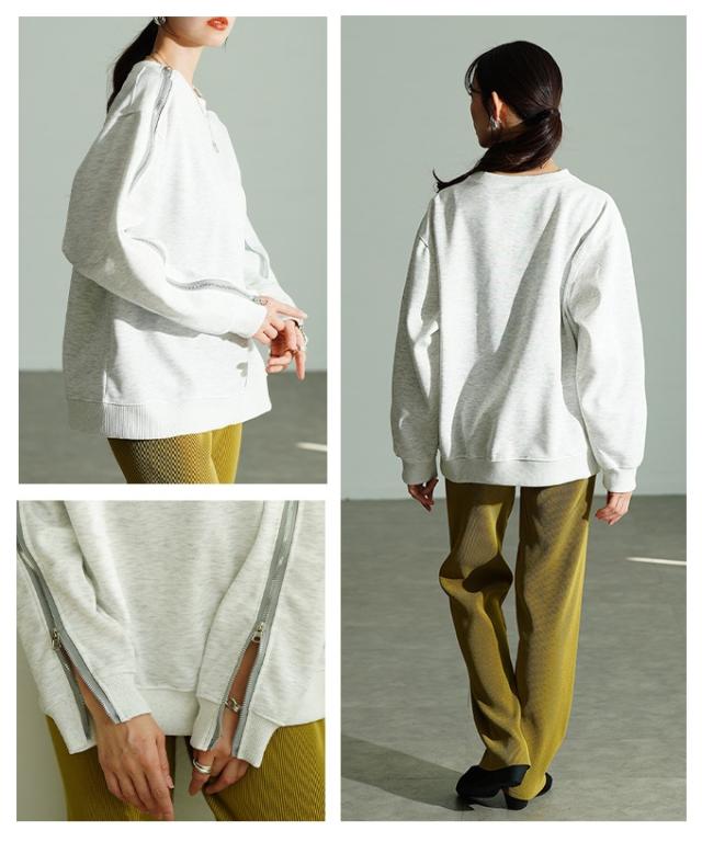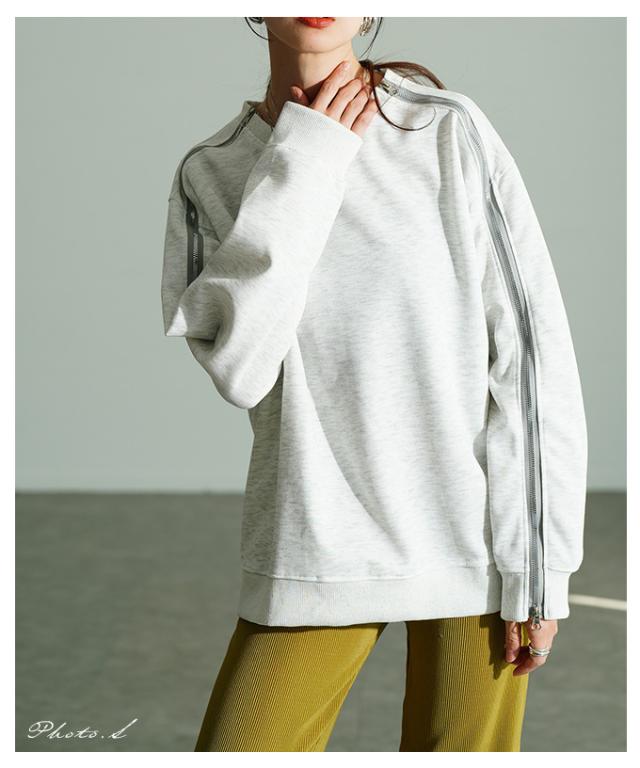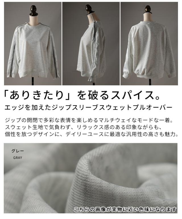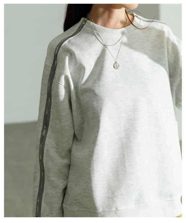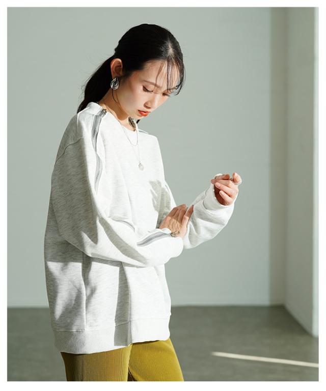 冬新作 エッジを加えたジップスリーブスウェットプルオーバー レディース ファッション トップス プルオーバー スウェット ジップアップ 長袖 シンプル 春 秋 冬 30代 40代 50代 60代 アラモード alamode otona 大人 cawaii 可愛い 洋服 かわいい服 mode-10096