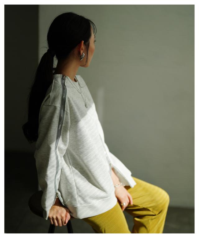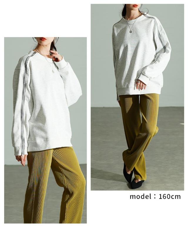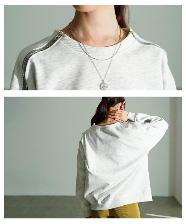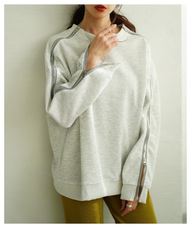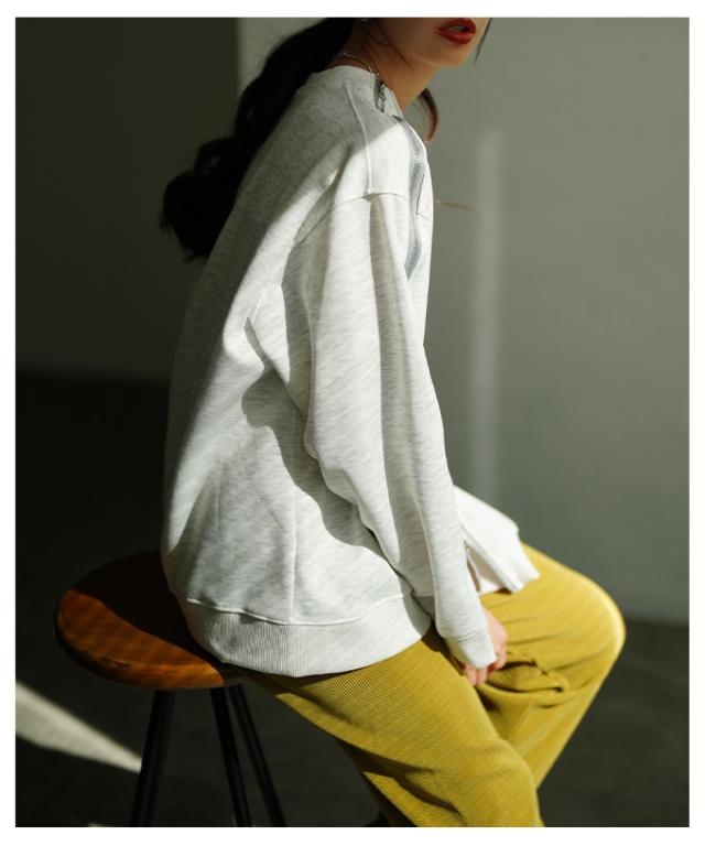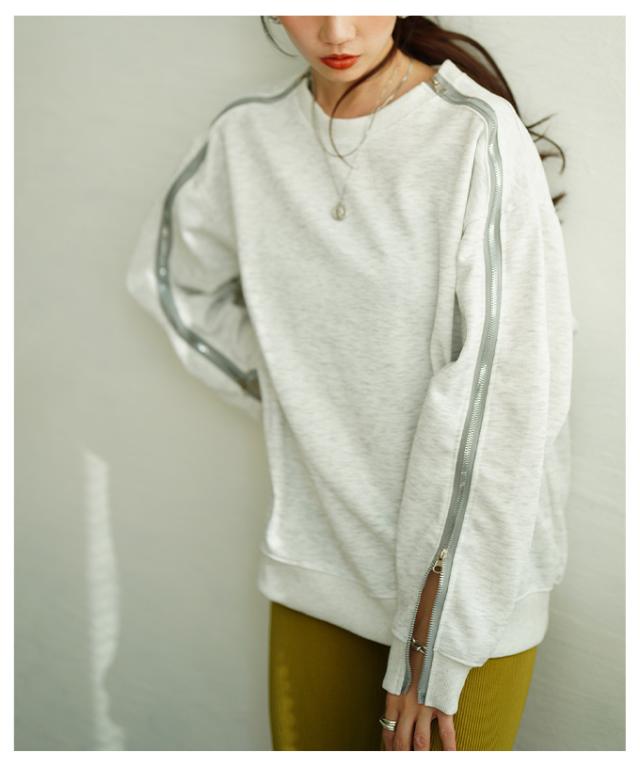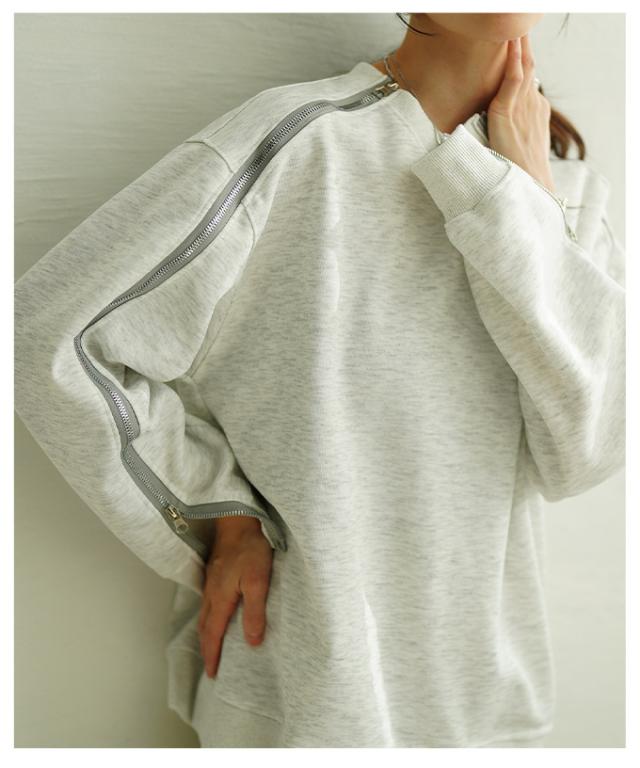 冬新作 エッジを加えたジップスリーブスウェットプルオーバー レディース ファッション トップス プルオーバー スウェット ジップアップ 長袖 シンプル 春 秋 冬 30代 40代 50代 60代 アラモード alamode otona 大人 cawaii 可愛い 洋服 かわいい服 mode-10096
