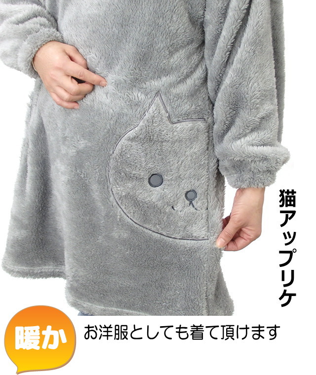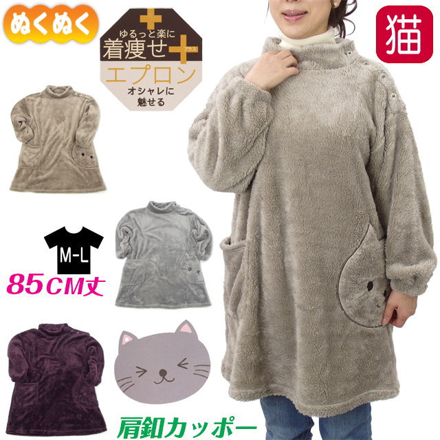 かっぽうぎ 冬 あったか エプロン スモック ゆったり 軽い 着やせ 体型カバー チュニック 猫 カジュアル M〜L フリー パープル グレー ベージュ ホームウェア 保育士さん 介護士さん 猫柄 猫雑貨 猫グッズ かわいい おしゃれ ギフト プレゼント 【 誕生日 】