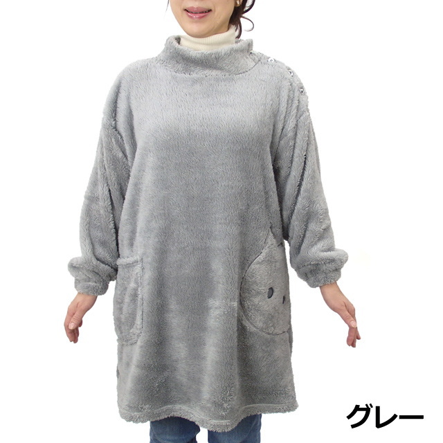肩ボタンのかぶりタイプ。サッとかぶって簡単に着用できます。