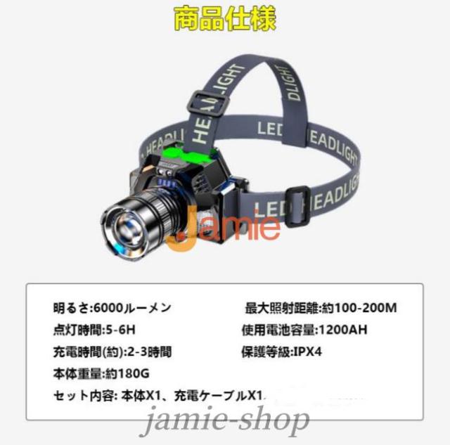 ヘッドライト ヘッドランプ 充電式 LED 6000ルーメン超高輝度 軽量 作業灯 撥水 登山 釣り キャンプ アウトドア用 防災グッズ 災害対策