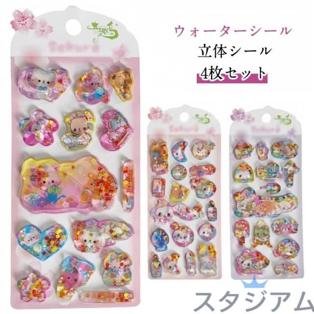 ぷくぷくシール 【4枚セット】水入りシール 【4枚セット】水入りシール 手帳 ごほうびシール 水揺れシール デコシール ウォーターシール 可愛い 女の子 小学生 幼稚園 3D立体 ノート アルバム飾り 水筒 デコレーション プレゼント ギフト