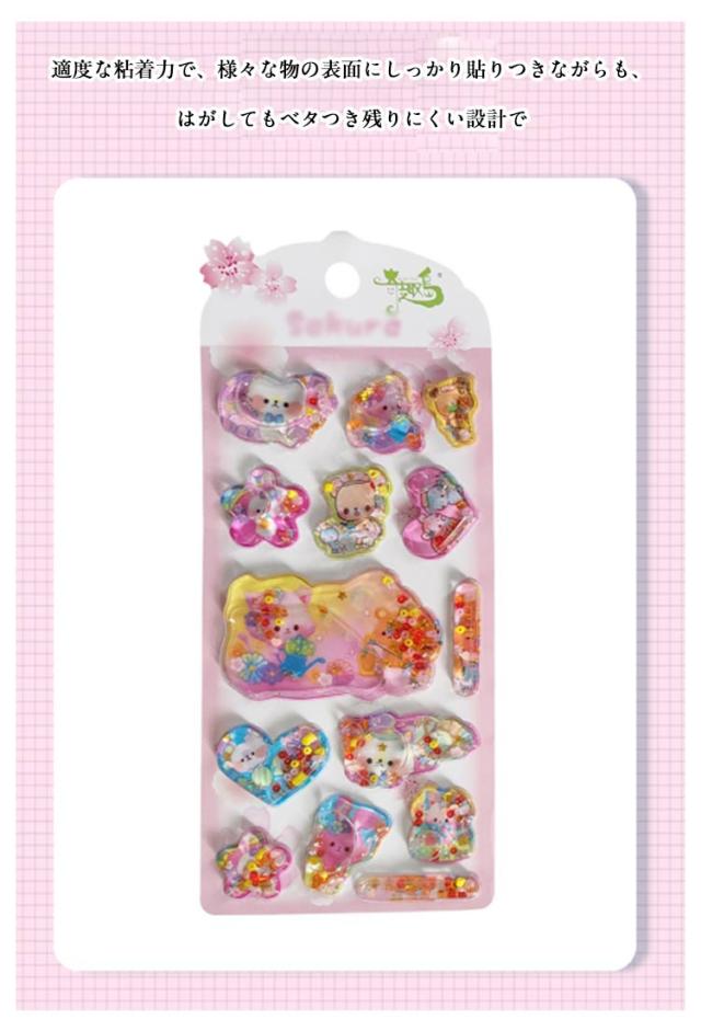 ぷくぷくシール 水入りシール 水入りシール 手帳 ごほうびシール 水揺れシール デコシール ウォーターシール 可愛い 女の子 小学生 幼稚園 3D立体 ノート アルバム飾り 水筒 デコレーション プレゼント ギフト