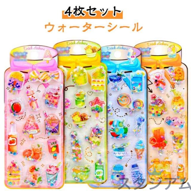 4枚セット!ウォーターシール ご褒美シール シール帳 4枚セット!ウォーターシール ぷっくりシール 女の子 小学生 可愛い ぷくぷくシール カラフル 立体シール 3D立体 手帳用 ノート デコシール クリスマス 手芸用品 クリエイティブ プレゼント