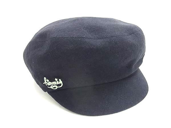 HERMES エルメス キャスケット Paola パオラ ネイビー リネン100% レディース 帽子 ロゴ刺繍 チェック柄 美品 【本物保証】