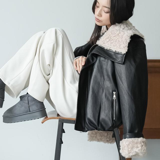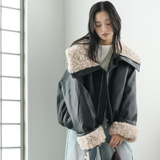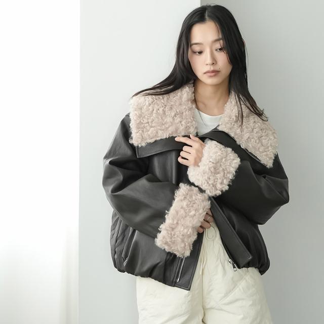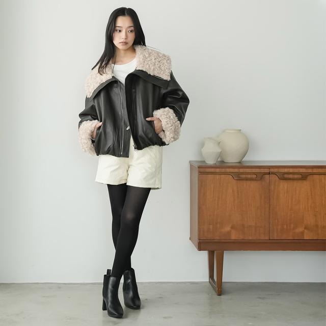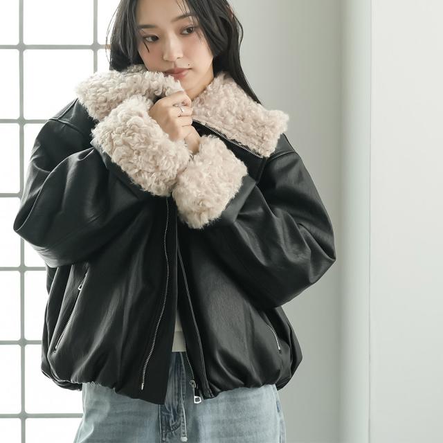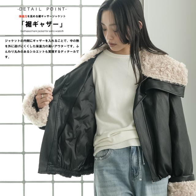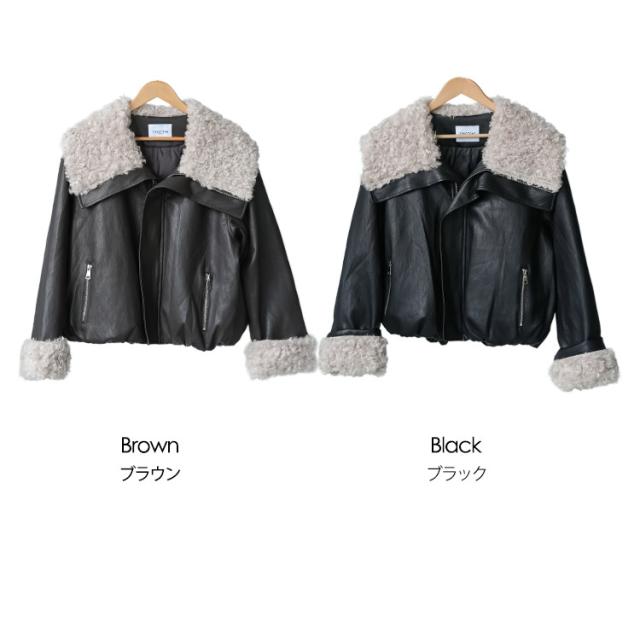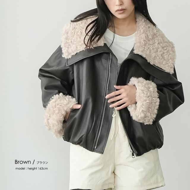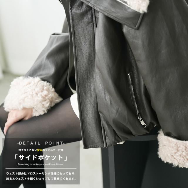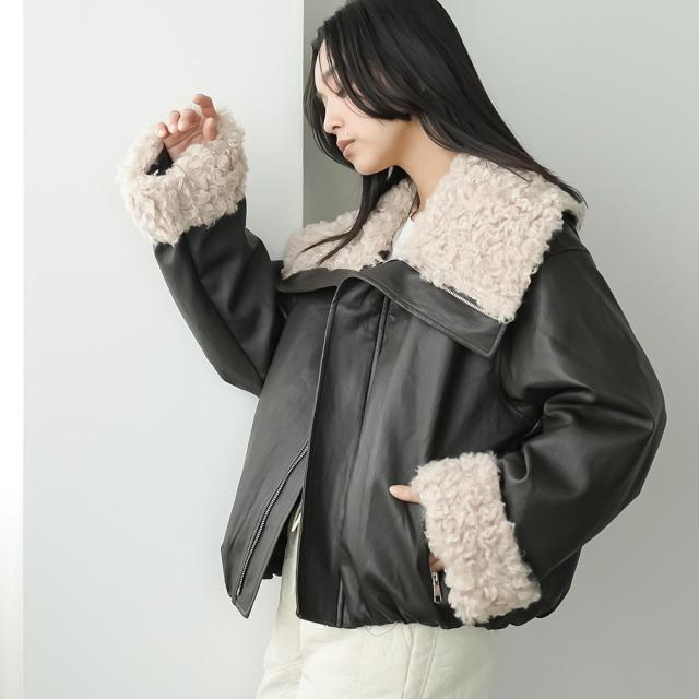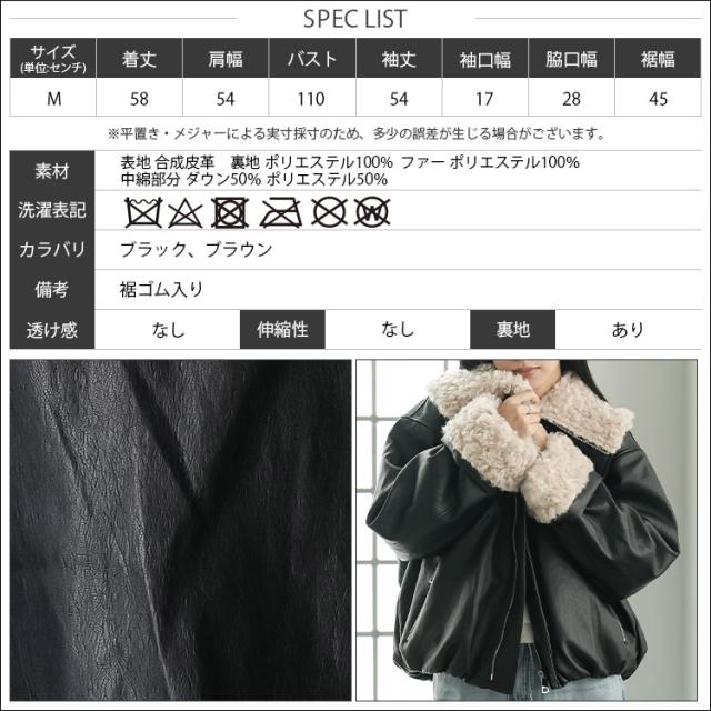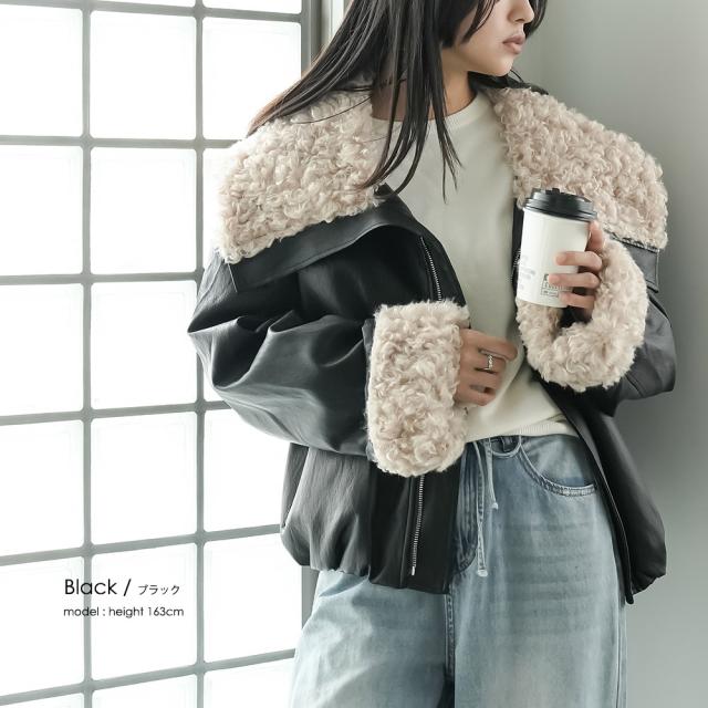 春新作 襟ファーフェイクレザーダウンジャケット ダウン フロントジップ 袖ファー 防寒 アウター 長袖 ジャケット 春夏 レディース アウター ミリアンデニ a62123
