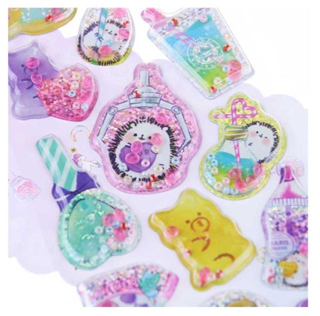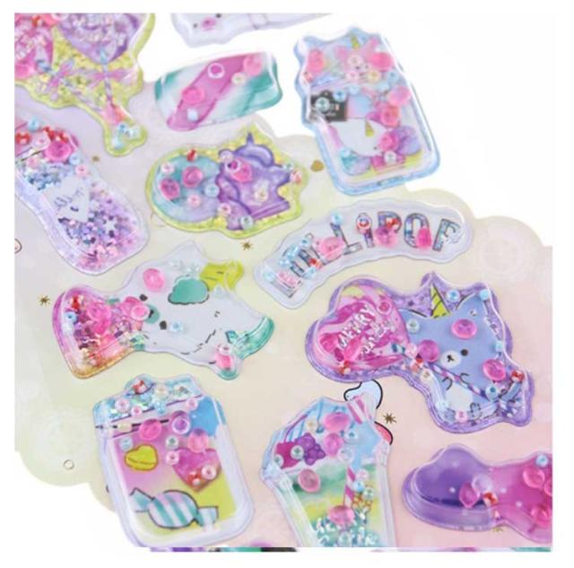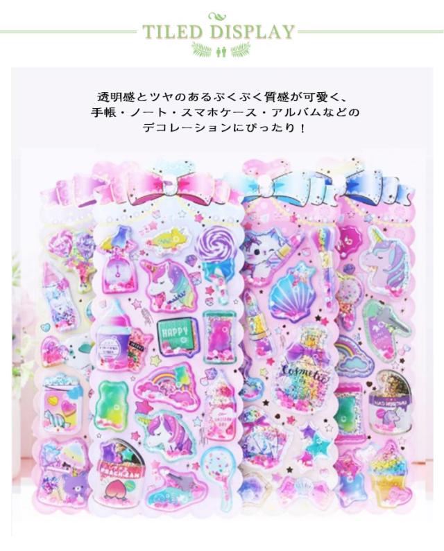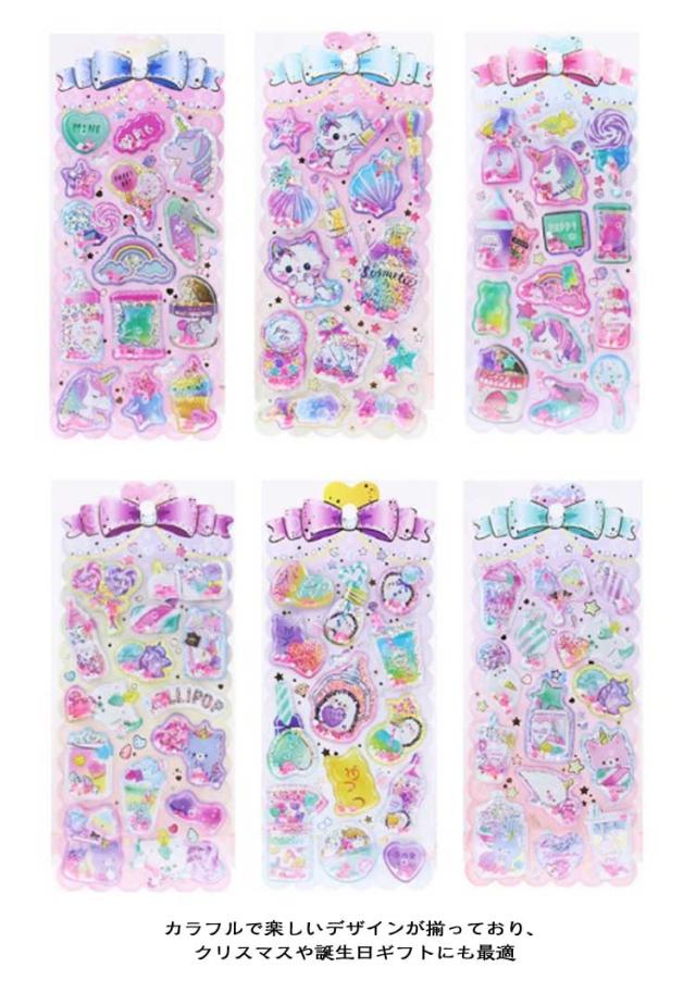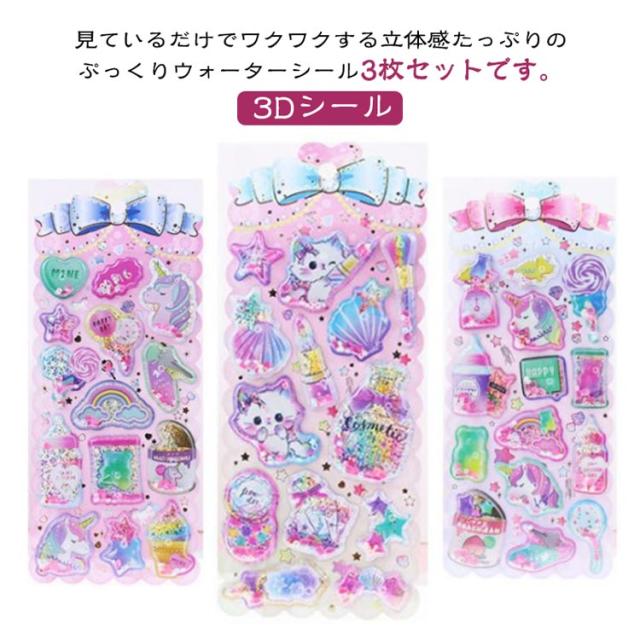 3枚セット ウォーターシール 立体シール シール 可愛いシール ぷっくりシール 3枚セット 女の子 ぷくぷくシール キラキラ プチドロップ ボンボン ボンドロップ 装飾用 DIY用 3Dシール 手帳 ステッカーデコ 手作り