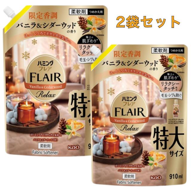 2袋セット ハミングフレア リラックス 柔軟剤 バニラ&シダーウッドの香り 限定香調 つめかえ用 北海道倉庫