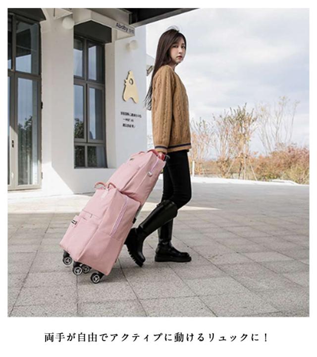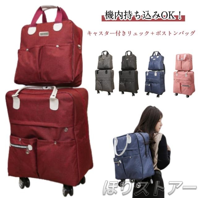 | 機内持ち込みOK!キャスター付きリュック+ボストンバッグ 4輪のキャスター搭載してスムーズで軽やかな走行を可能にし、 軽量な機内持ち込みサイズで短期旅行や帰省、出張、ショッピングなどに最適! 2WAY機内持ち込み可!荷物を楽に運べて移動もスムーズなキャリーに! 両手が自由でアクティプに動けるリュックに! 収納便利&省スペース! 使わないときはキャリー台に折りたたみ可能。 | |
