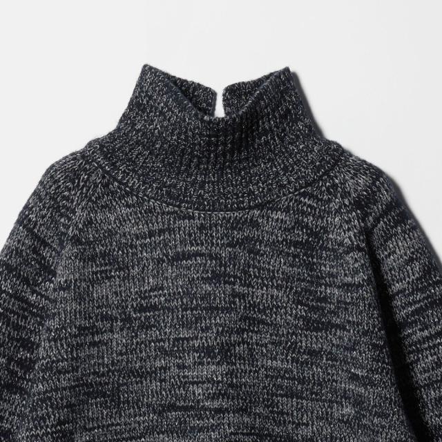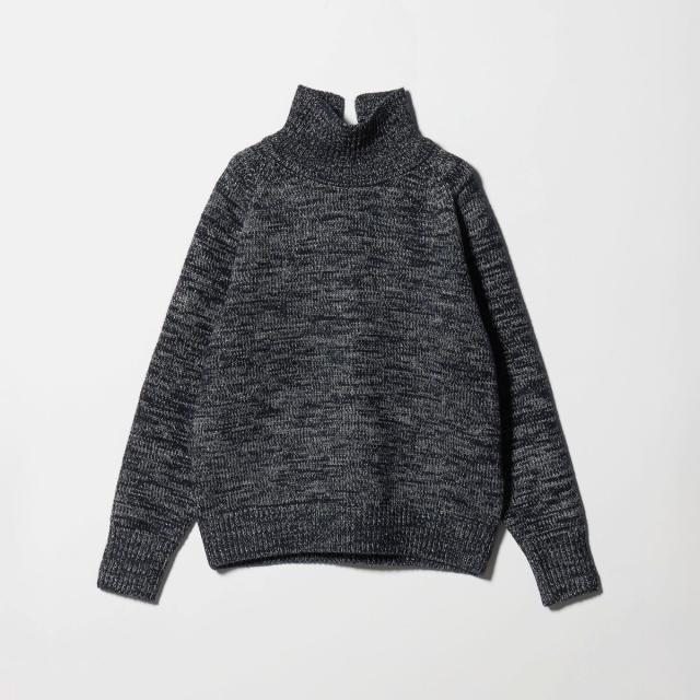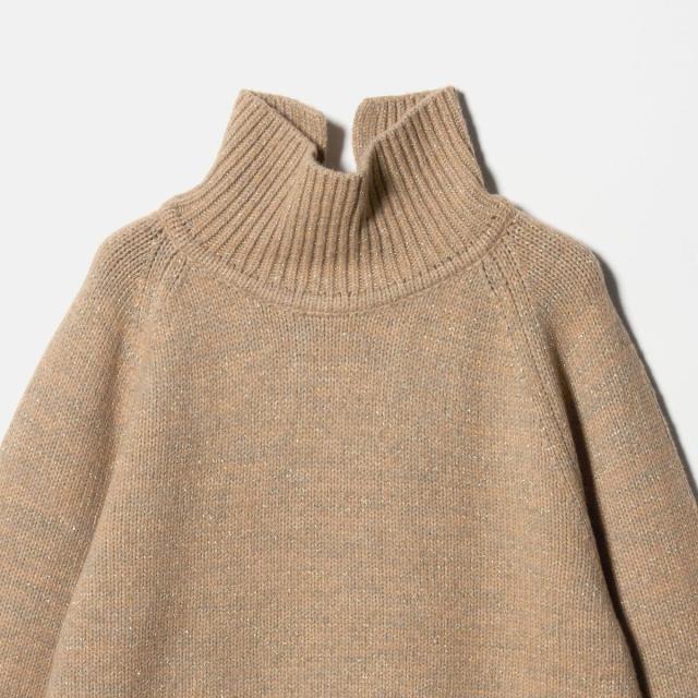 ミックスカラーの色味とラメで表情が豊かなタートルネックニット。