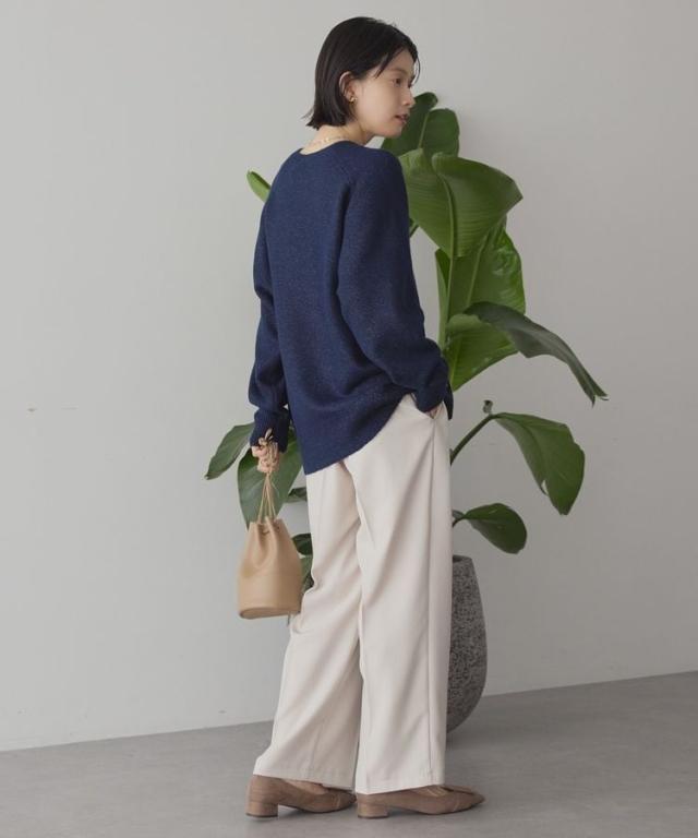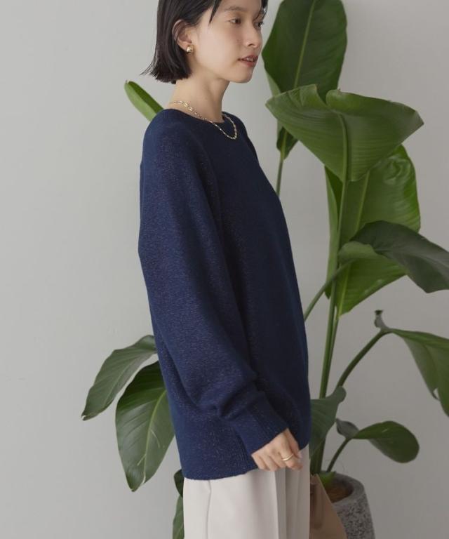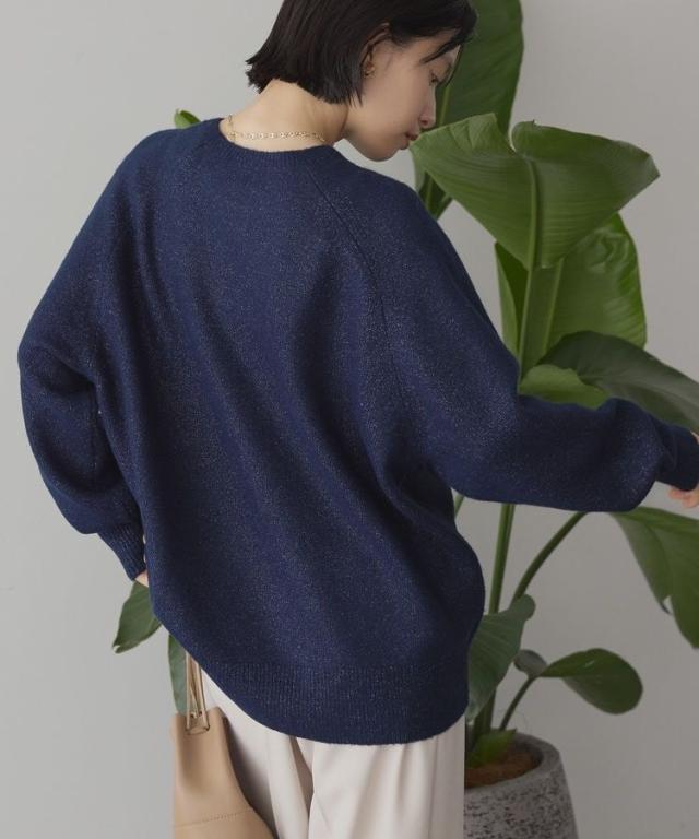 もっちりとした柔らかな質感が魅力のプルオーバー。上品に煌めくラメ混ニットがスタイリングを華やかにブラッシュアップしてくれる旬な1枚です。ラグランスリーブにゆったりとしたフォルムが女性らしいニュアンスをプラス。カジュアルなデニムはもちろん、きれいめなスカートにも好相性の着回しやすいアイテムです。透け感[なし]