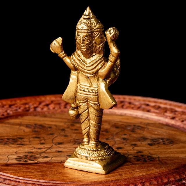 ブラフマー 立像 重厚なブラス製 高さ:14.5cm程度 / ブラフマー、ブラフマー神、インドの神様、ヒンドゥー教、真鍮像、真鍮製置物、神像、エスニックインテリア、祭壇飾り、瞑想グッズ インドとアジア雑貨 【インドとアジアン雑貨