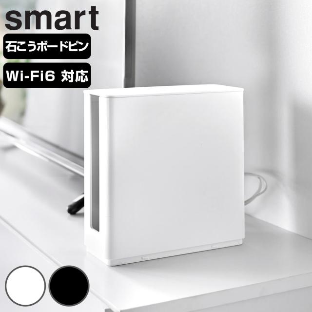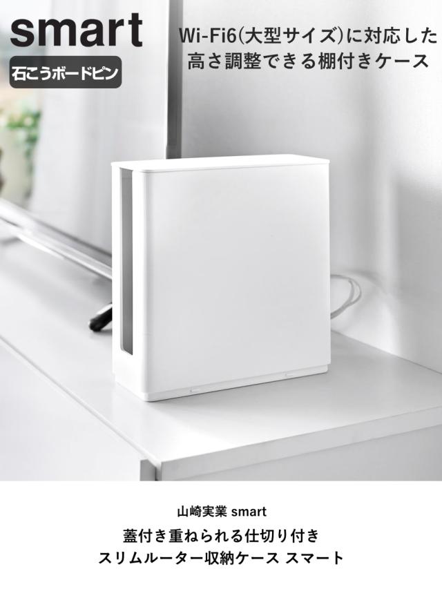 山崎実業 smart 蓋付き重ねられる仕切り付きスリムルーター収納ケース スマート ( 4903208103145 スマートシリーズ ルーター収納ケース スリム 蓋付き 重ねられる 仕切り付き ルーター 収納ケース 隠せる ルーター収納 壁面収納 壁 )