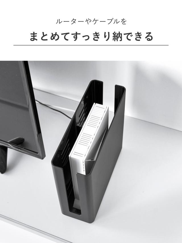 Wi-Fi6(大型サイズを含む)に対応した、ルーターやケーブルなどを収納できる、蓋付きの重ねられるルーター収納ケースです。置き場所に困るルーターをリビングや玄関ですっきり収納ができます。