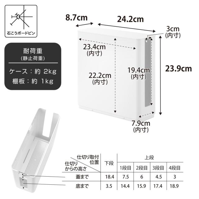 | サイズ | 約 幅24.2×奥行8.7×高さ23.9(cm) 【内寸】 収納部:約 幅23.4×奥行7.9×高さ22.2(cm) スリット部:約 奥行3×高さ19.4(cm) |