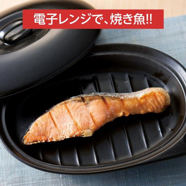 電子レンジのマイクロ波により250度に発熱したプレートで、魚がしっかり焼けます。